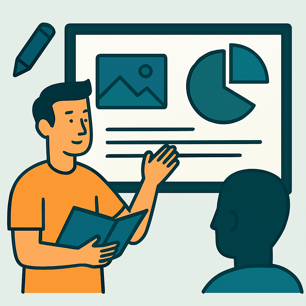 En présentiel ou en ligne, nous offrons un soutien adapté : recherche d’informations, organisation du contenu, création visuelle et conseils pratiques.